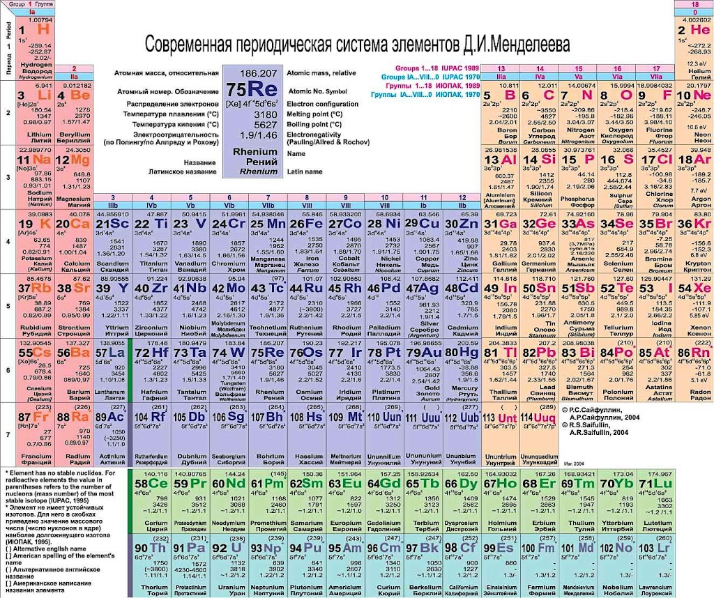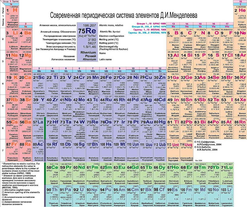 | Периодическая система элементов Менделеева |