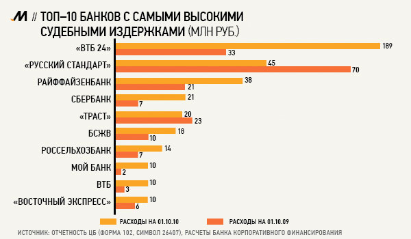 10-ка банков с самыми высокими судебными издержками.