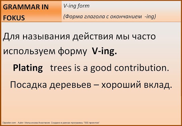 Форма глагола с окончанием -ing - Наглядное пособие по Английскому языку